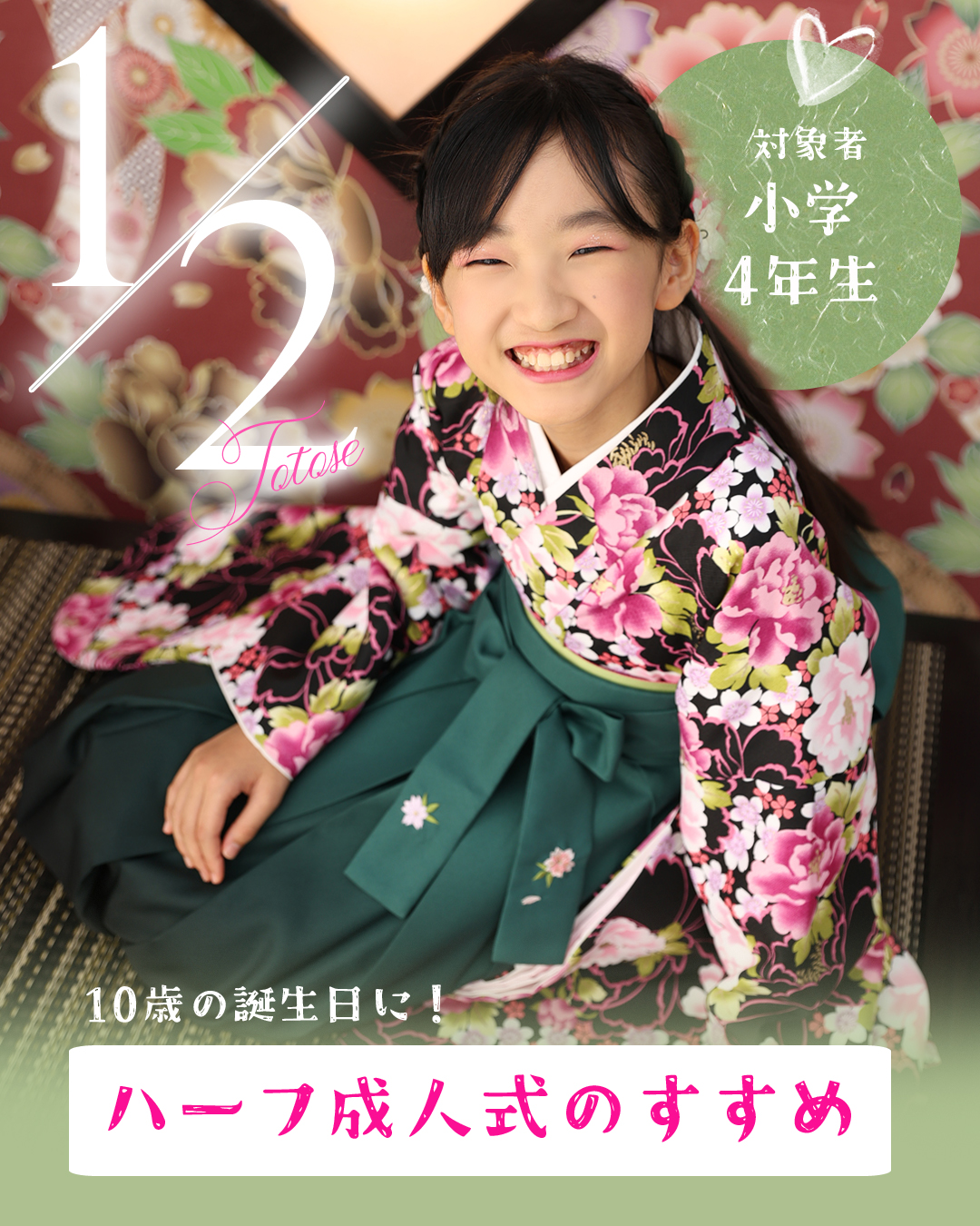スタッフブログ コラム 2025/11/13 【コラム】1/2ハーフ成人式・十歳(ととせの祝い)って? コラム 2025/08/14 いつ決める?どうしたら?紋服 インフォメーション 2023/10/13 いつが正解?成人式の振袖準備 コラム 2023/08/13 【コラム】この機会に家族写真を! インフォメーション 2021/06/30 七五三コラム vol.2【七五三っていつするの?】 コラム 2021/06/14 七五三コラム vol.1【七五三の由来】 1 1