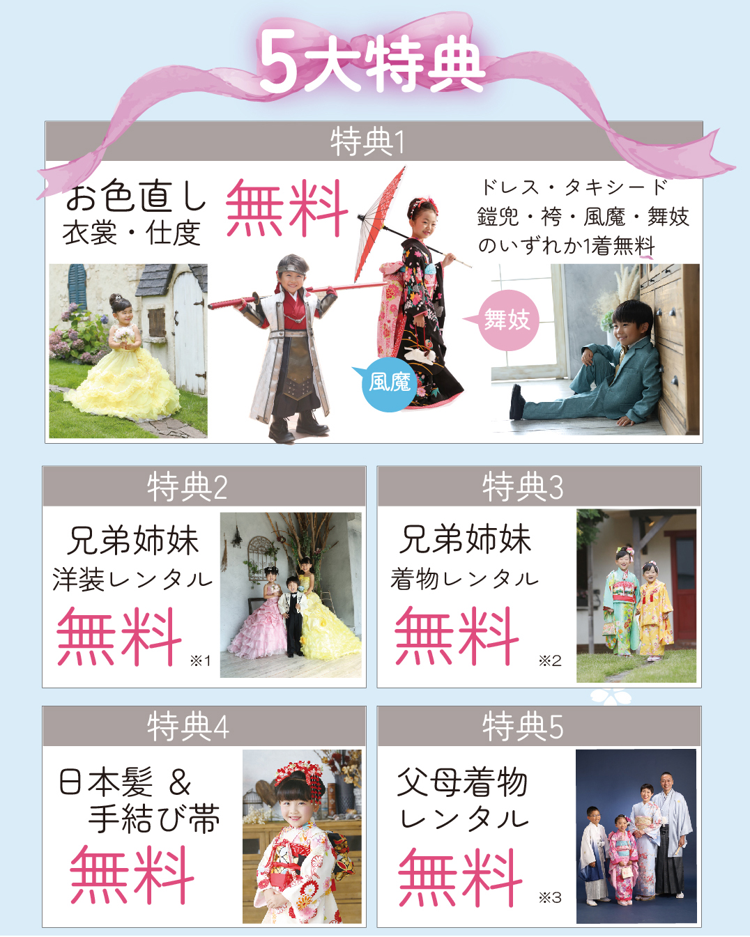 ※2お着付け代4歳から別途頂戴いたします