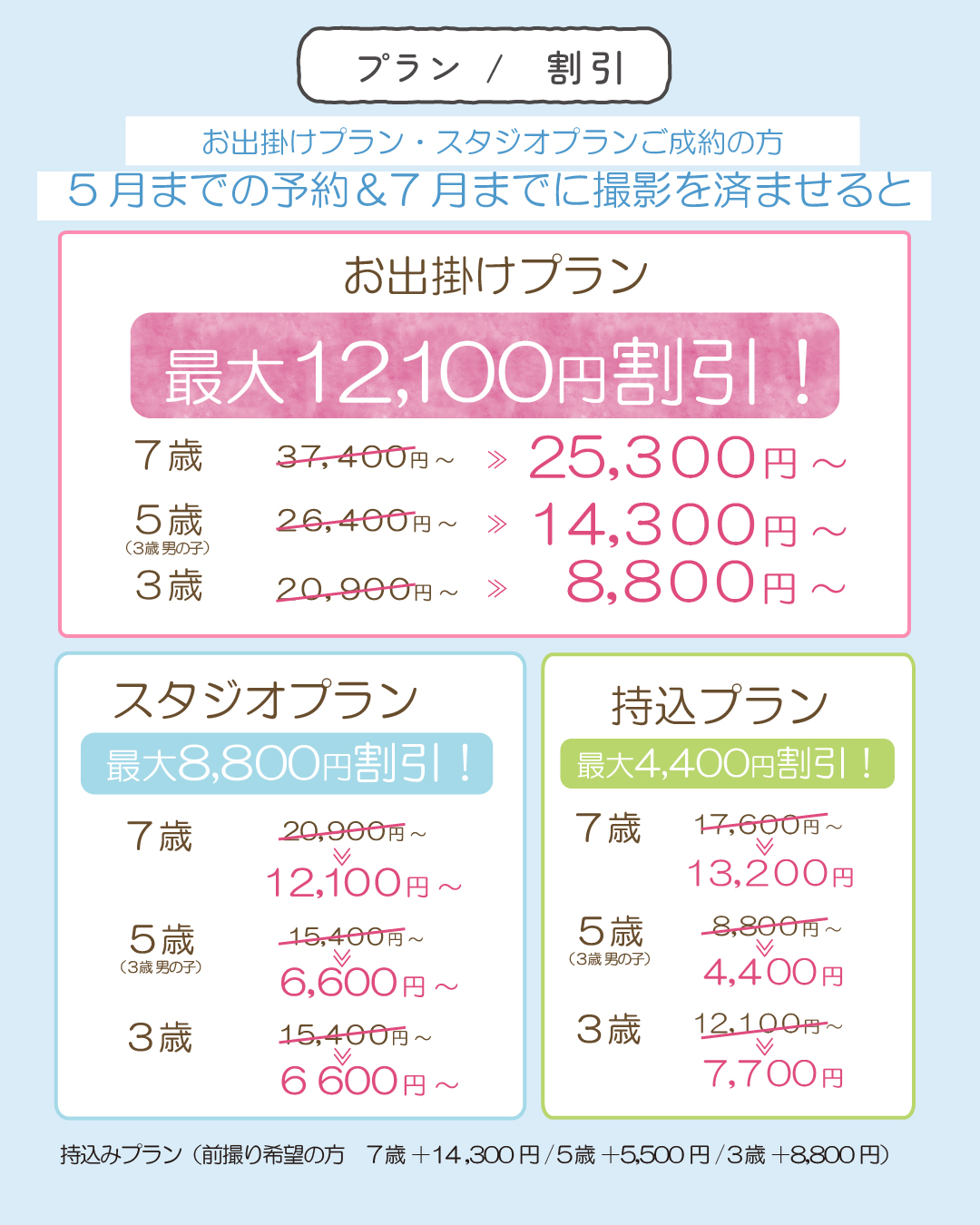 7月~9月までの撮影だと2,200円引き!